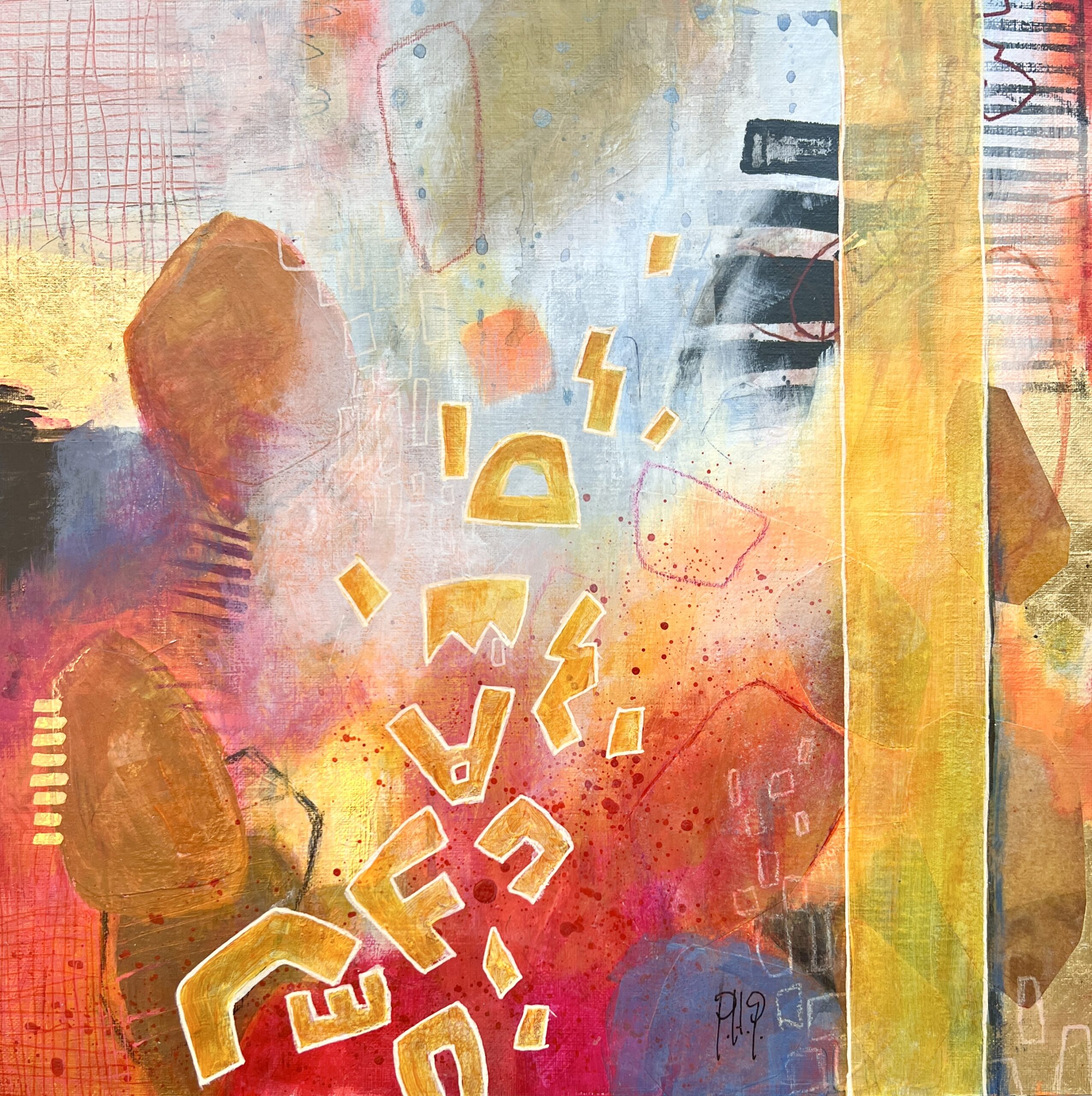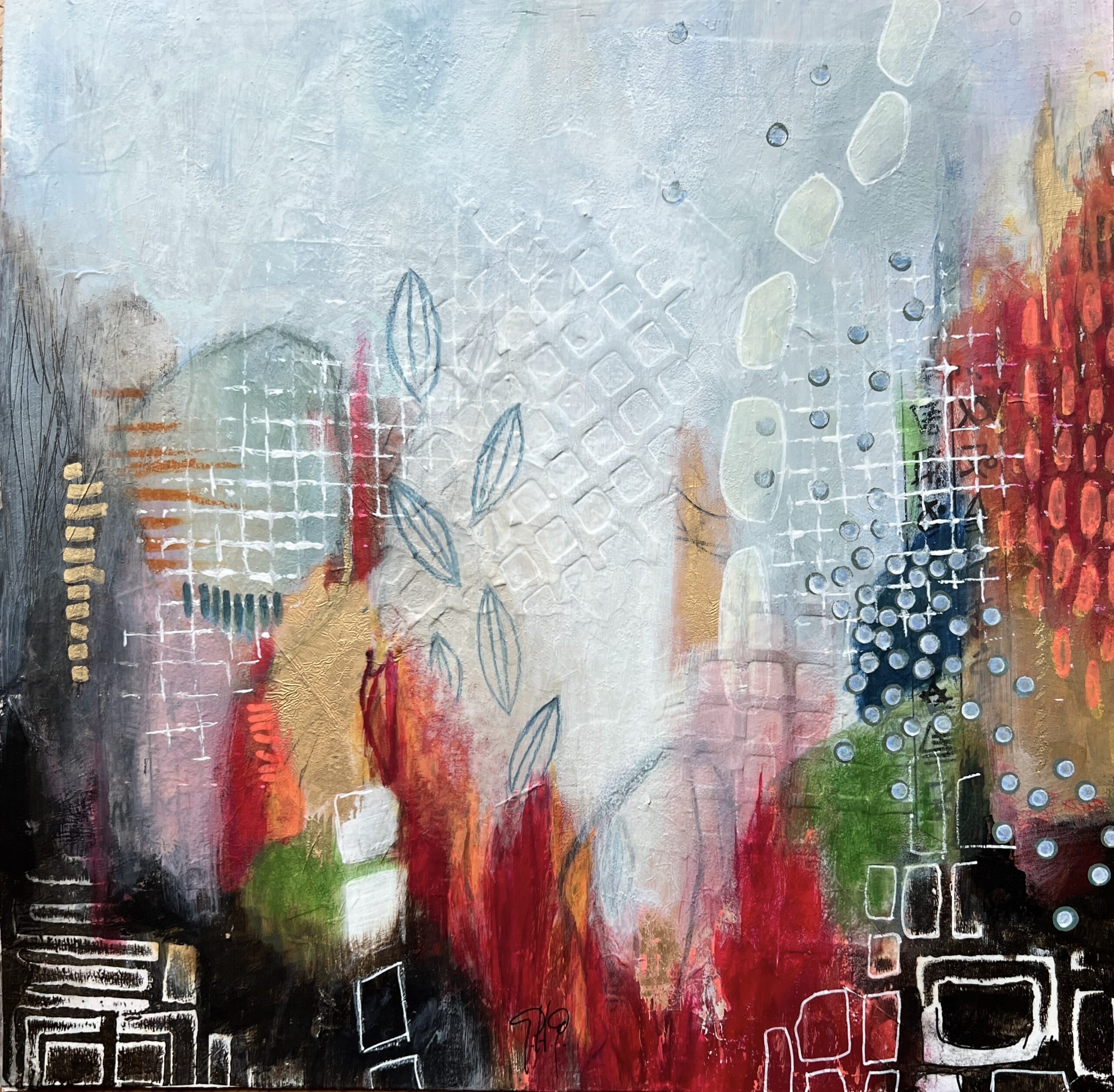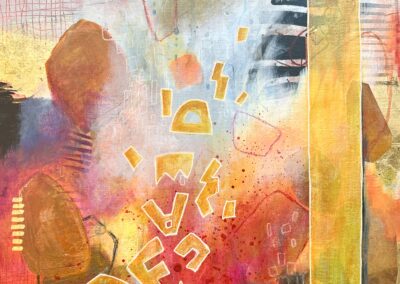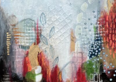 acrylics and mixed media on wood panel 12″x12″
