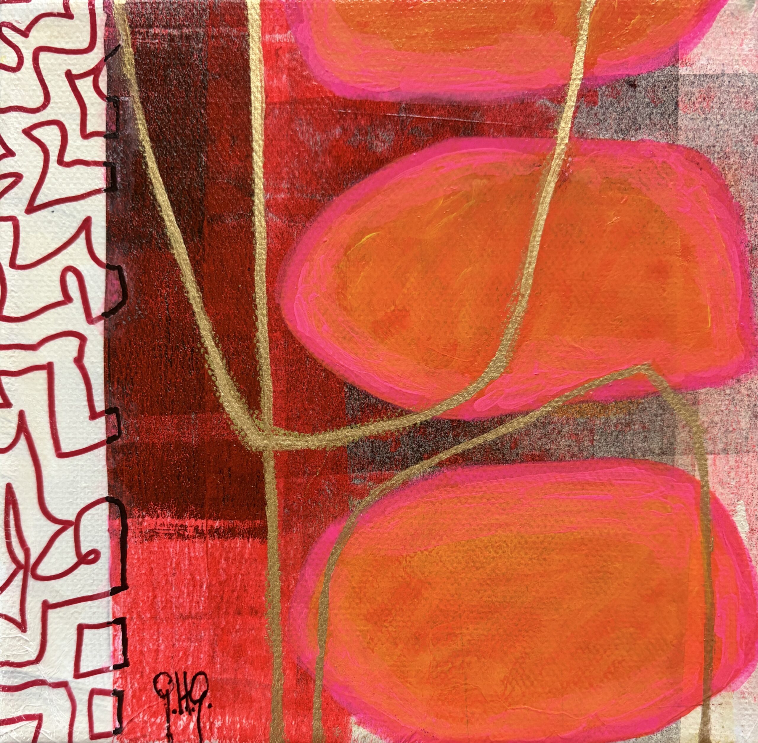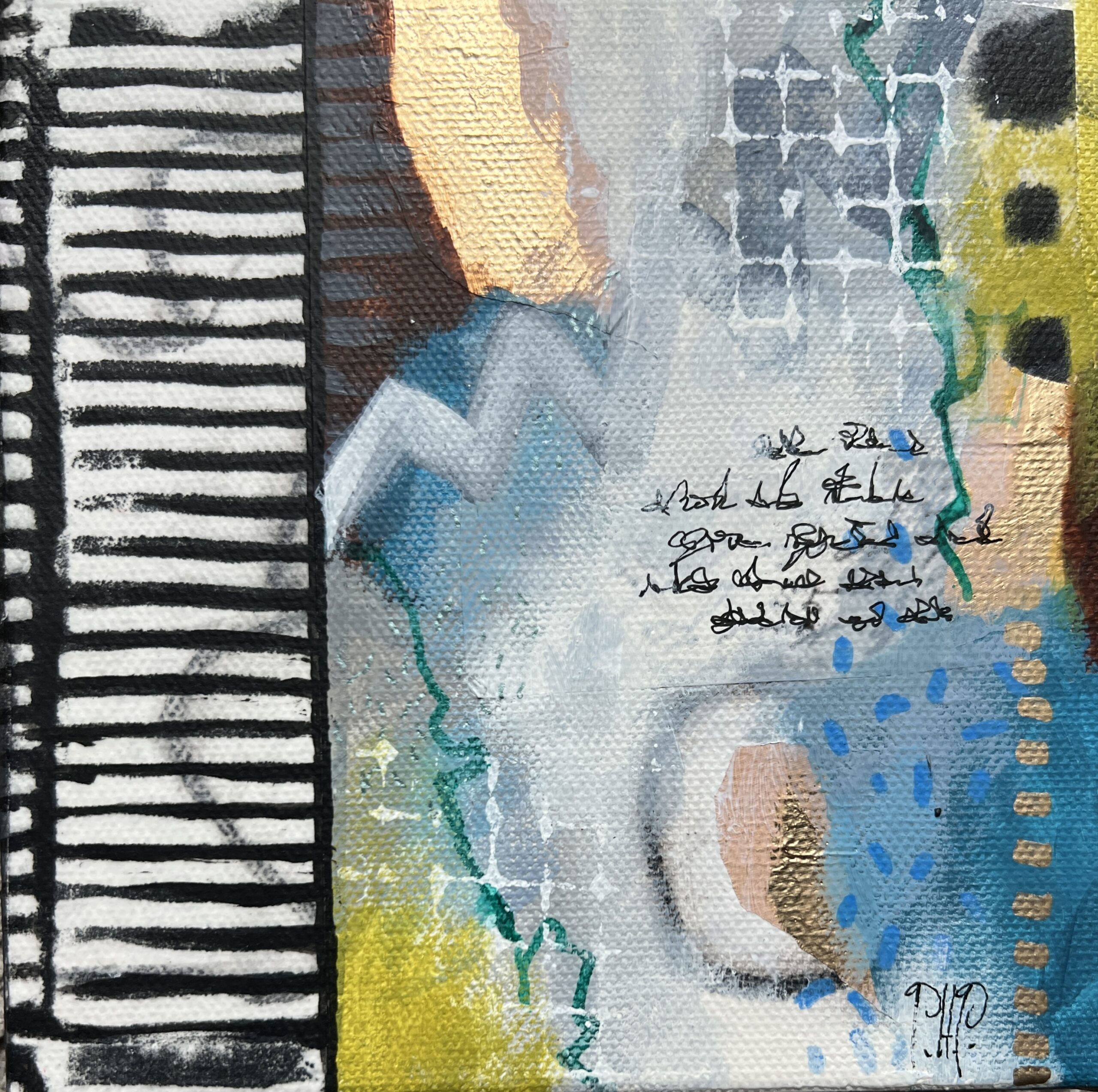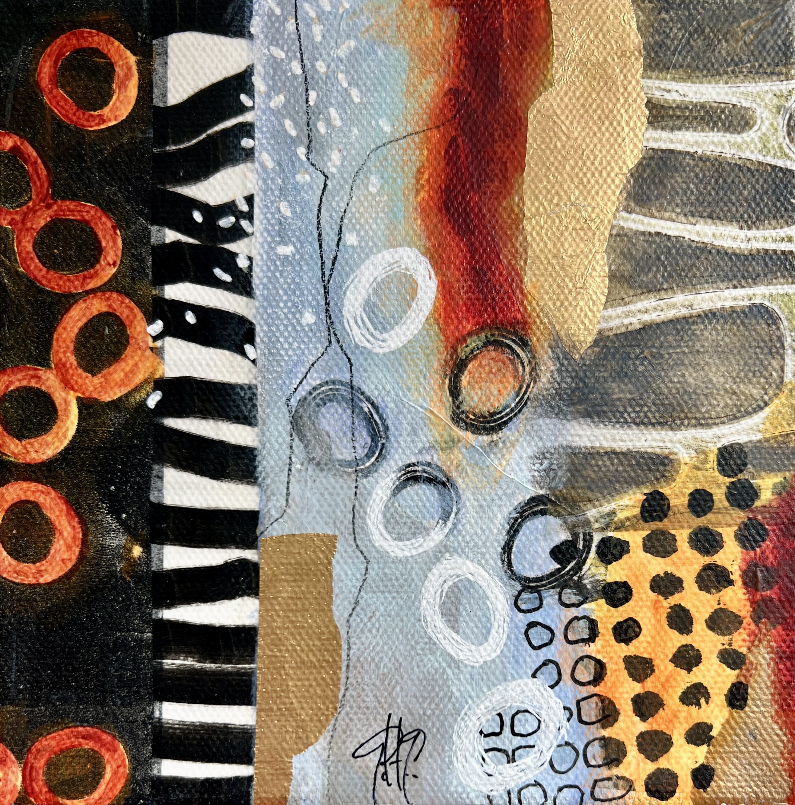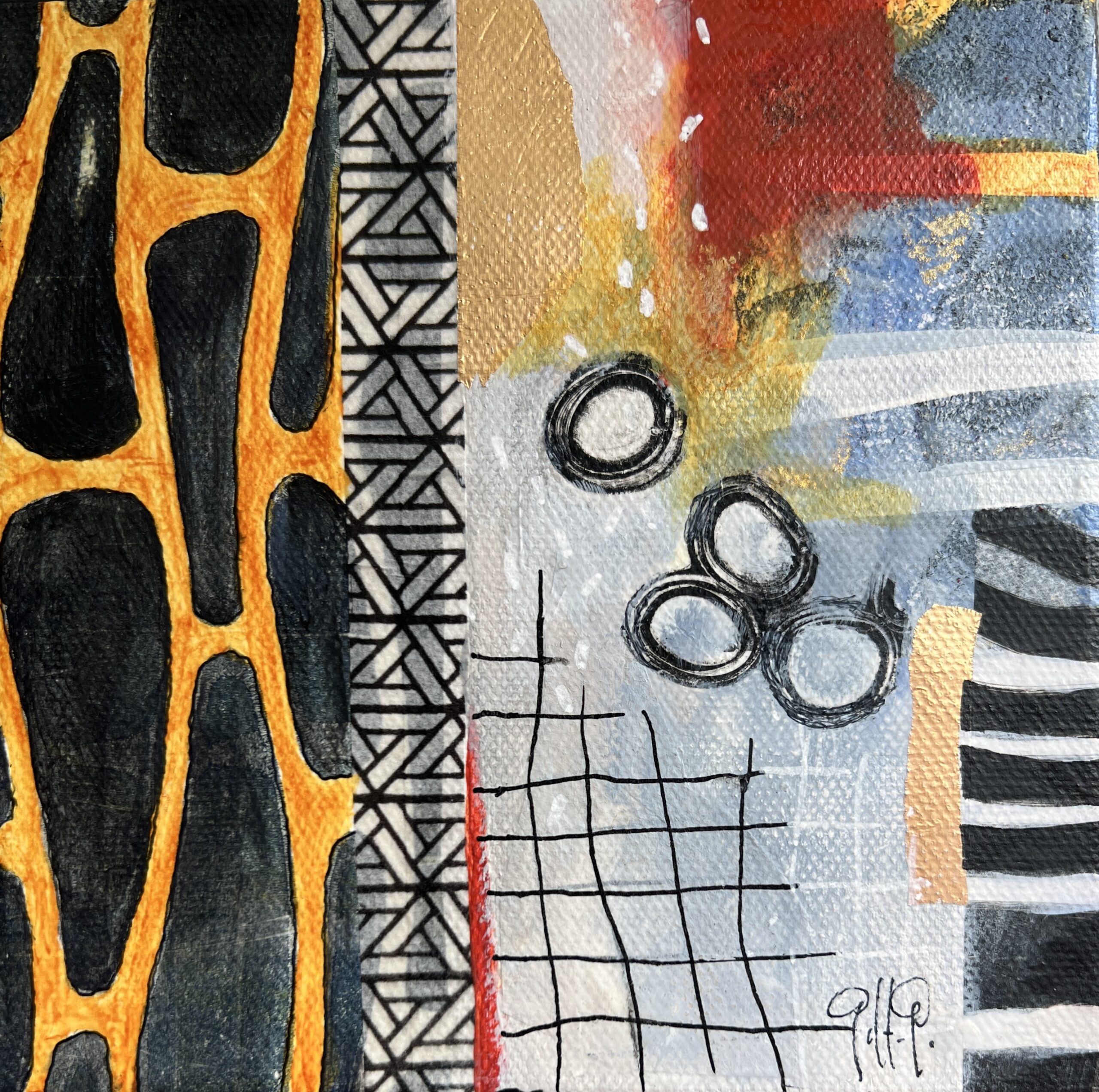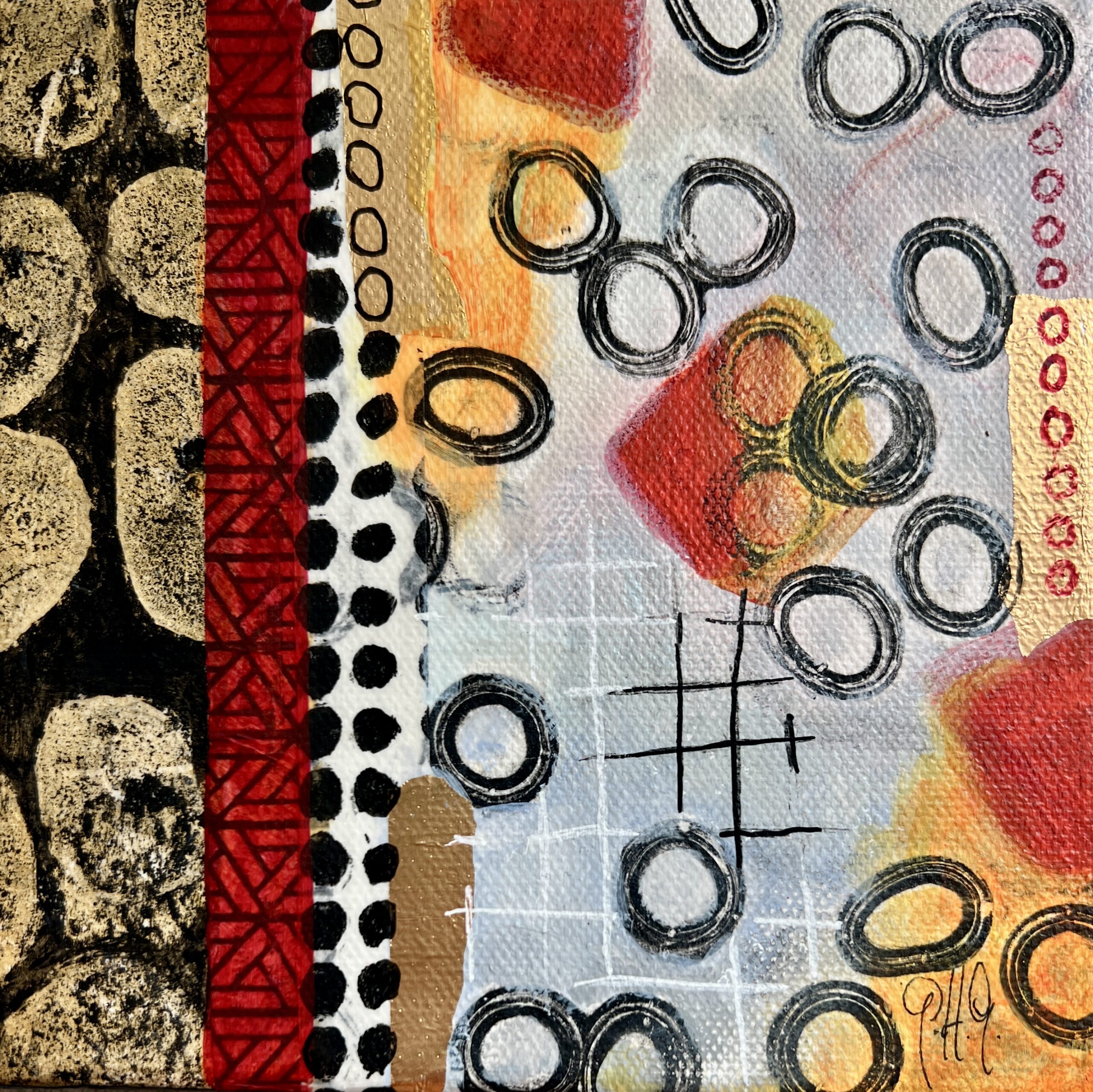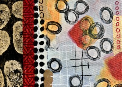 acrylics and mixed media on stretched canvas 6″ x 6″