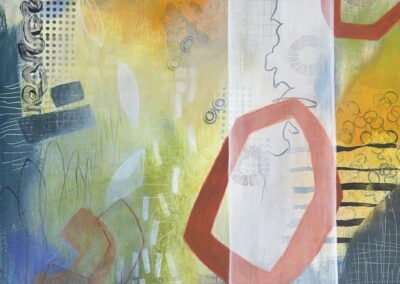 acrylics and mixed media on wood panel 20″ x 20″ x 1,5″